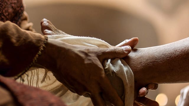 At the Last Supper, Jesus took a towel and bowl, knelt before his disciples and washed their feet, the job of the lowest slave. They were horrified. Peter argued, but finally agreed. Afterwards, Jesus said, “I have set you an example that you should do as I have done for you” (John 13:15).